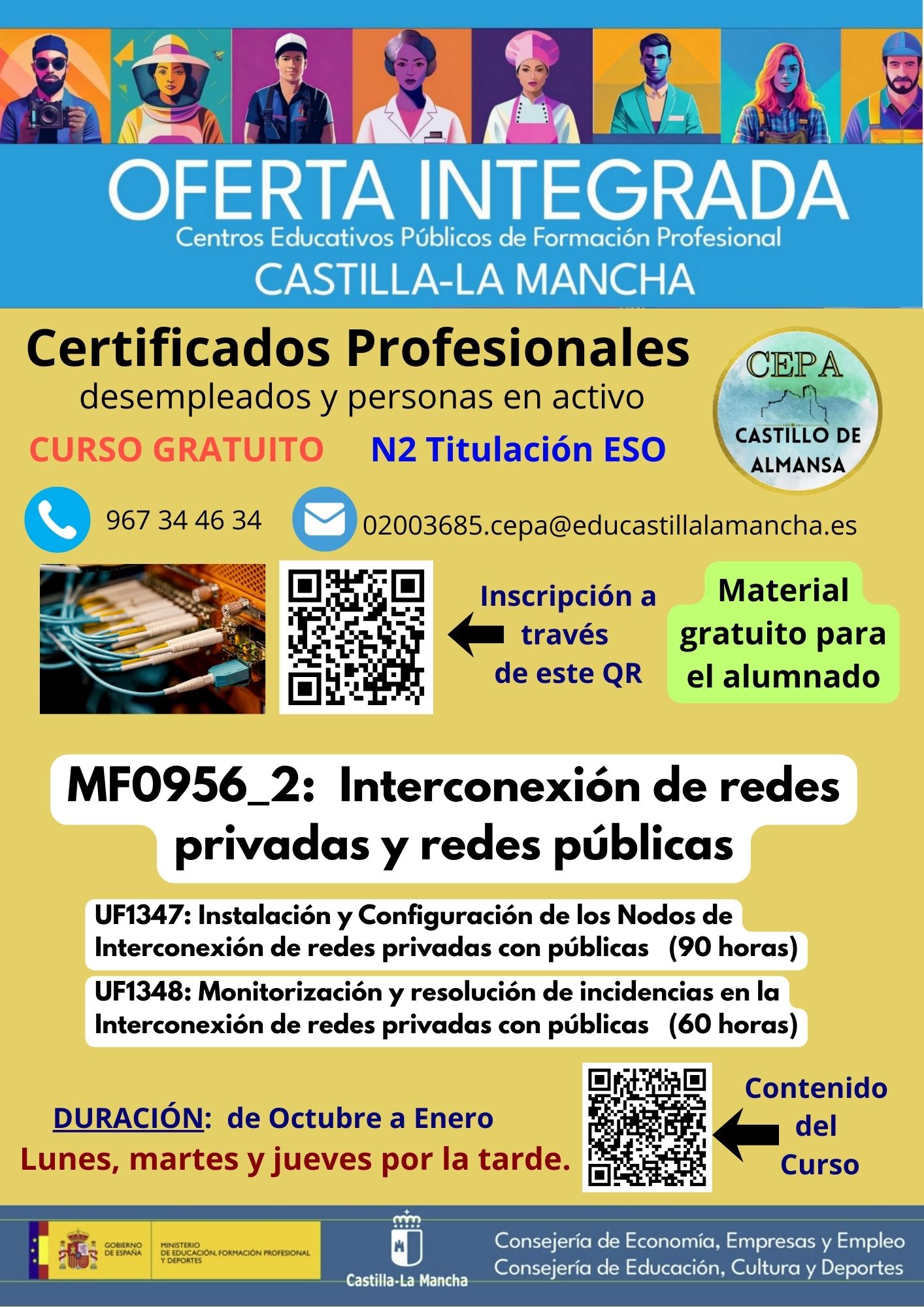 OFERTA INTEGRADA DE FP: Curso gratuito concedido al CEPA CASTILLO DE ALMANSA "Interconexión de redes privadas y redes públicas (150 horas)"