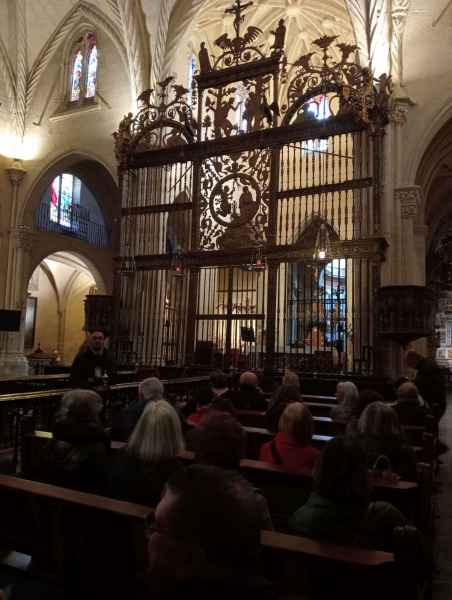 Por último, pudimos disfrutar de la visita guiada a la Catedral de Orihuela, emblema de la antigua Gobernación y Obispado de la localidad. La explicación pormenorizada y magnífica por parte de nuestro guía nos permitió poder apreciar el valor arquitectónico de este templo erigido en su origen como la parroquia principal de la ciudad de Orihuela. Este se encuadra dentro del Gótico Mediterráneo, en donde sobresale la extraordinaria intervención en su crucero del arquitecto Pere Compte, autor de la Lonja de Valencia, un alarde arquitectónico que dotó de luz y atmósfera a la pequeña Catedral de Orihuela.