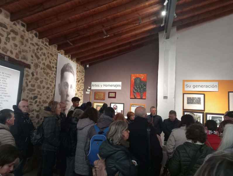 A continuación, realizamos la visita de la Casa Museo de Miguel Hernández, donde vivió el poeta junto a su familia desde 1914 hasta 1934. El conjunto de las dependencias existentes está configurado por una serie de aterrazados donde se sitúan sucesivamente la vivienda, el patio, el cobertizo para las cabras y el huerto. En el huerto se conservan varias higueras de la época de Miguel Hernández y en ese entorno pudimos recitar la Elegía a Ramón Sijé, poema escrito por el poeta en homenaje a su amigo y paisano Ramón Sijé.