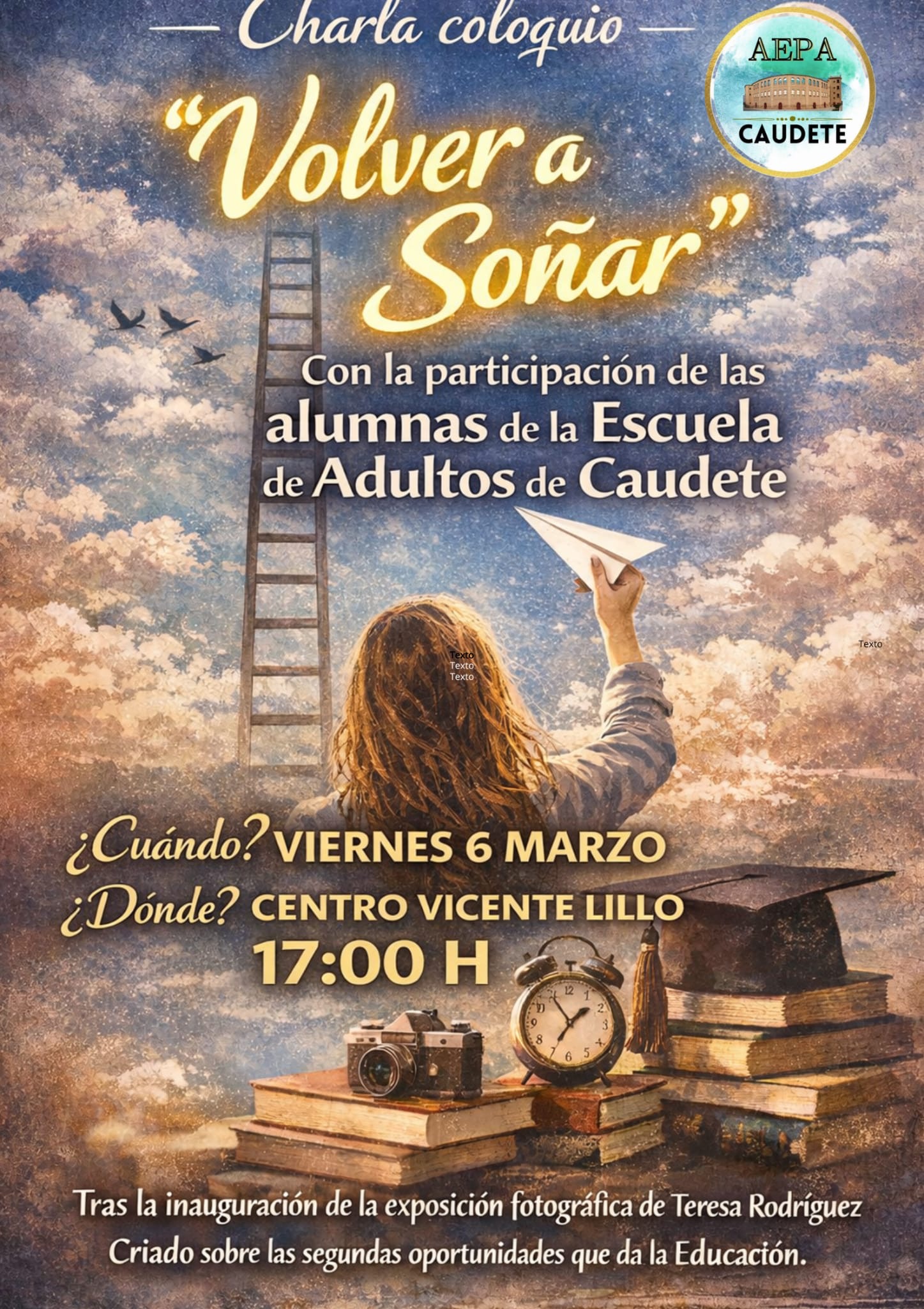 Desde el aula de Caudete os queremos invitar a una Charla Coloquio denominada "Volver a Soñar" en el Centro Vicente Lillo, en la que van a participar alumnas de nuestra escuela.