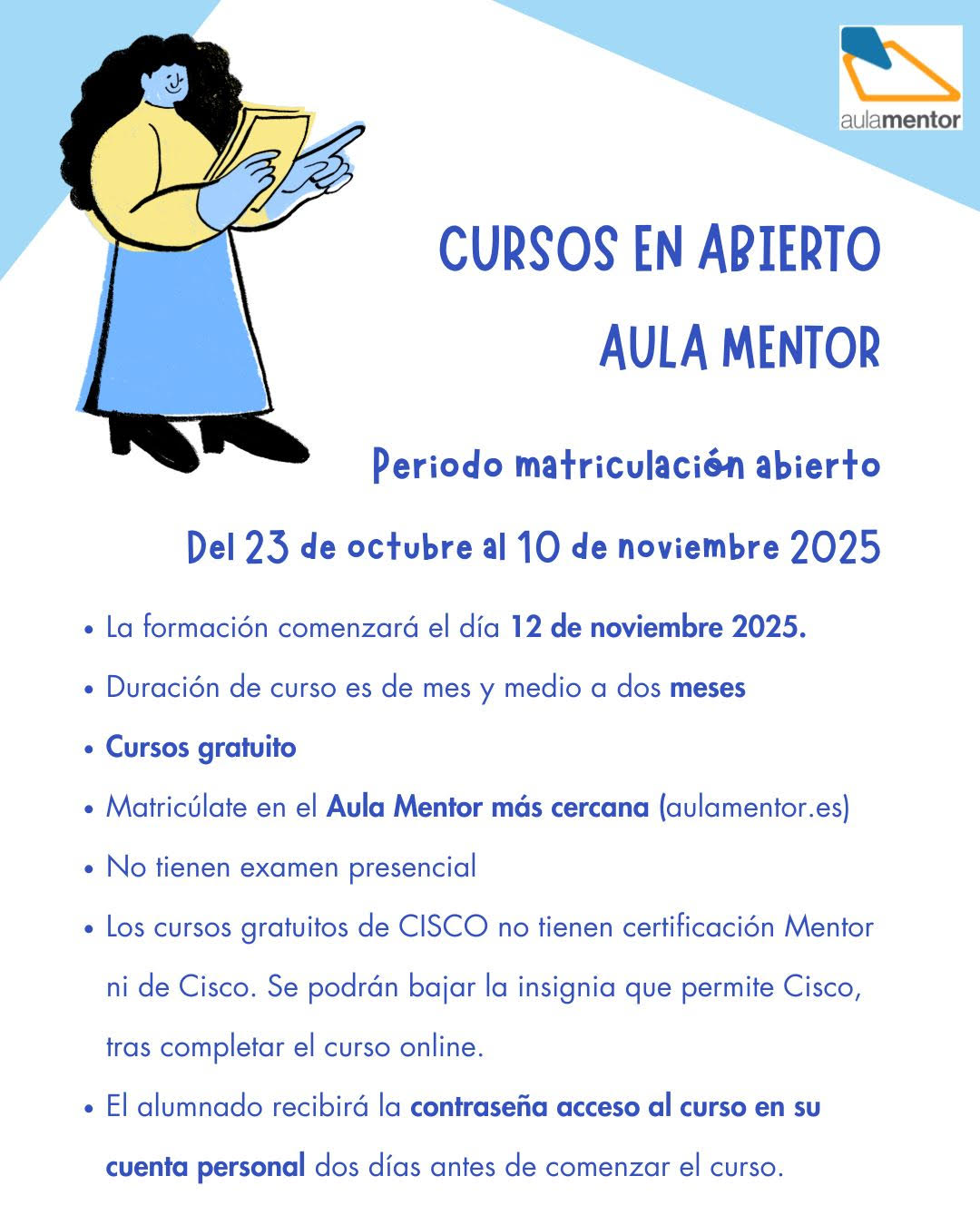 - Matricúlate en el Aula Mentor más cercana (www.aulamentor.es)