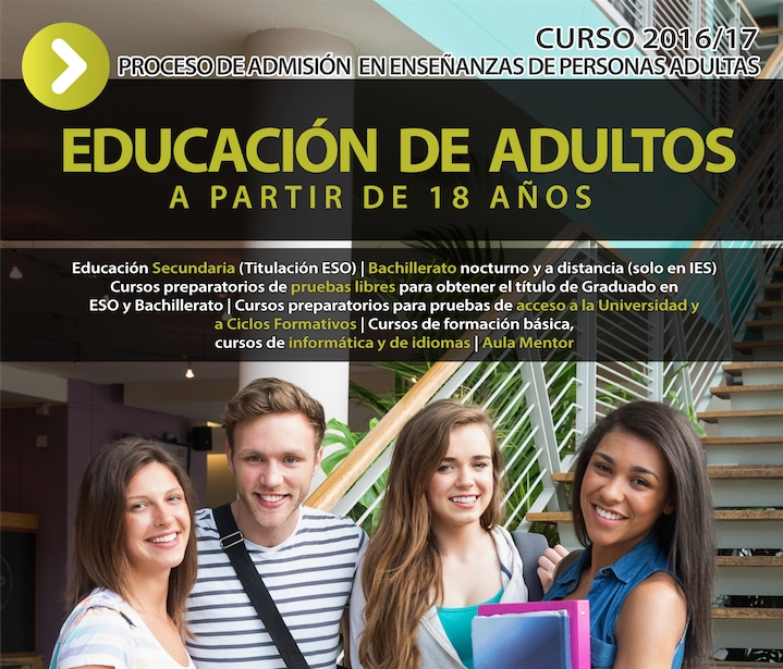 Publicada la convocatoria admisión de alumnado para el curso 2016-2017 en centros docentes de titularidad pública de Castilla-La Mancha que imparten educación para personas adultas.