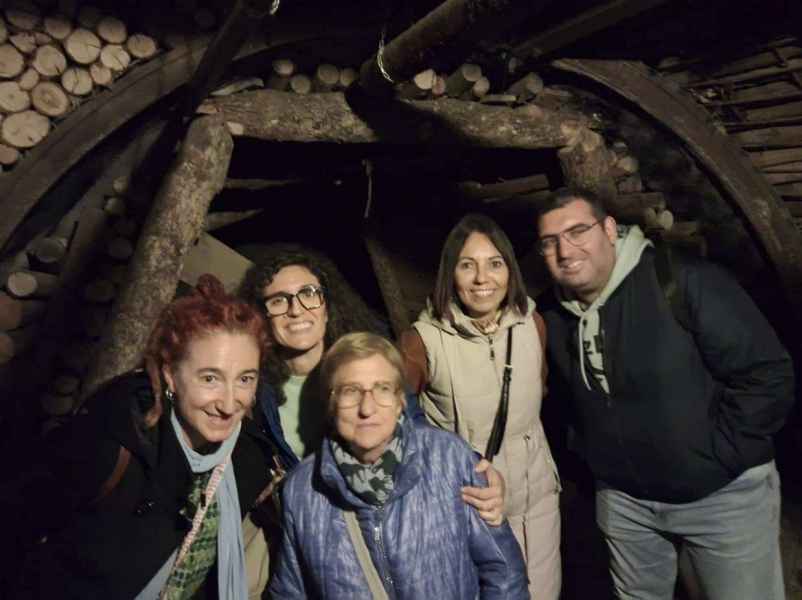 A continuación, nos dirigimos a la Mina visitable. La visita la llevamos a cabo con el guía Félix Martín, quien nos muestra las galerías superior e inferior, los tipos de entibación más frecuentes en una mina subterránea de la cuenca de Barruelo y los dos talleres, nos permitieron aproximarnos a las extremas condiciones de trabajo de los mineros para la extracción del mineral.