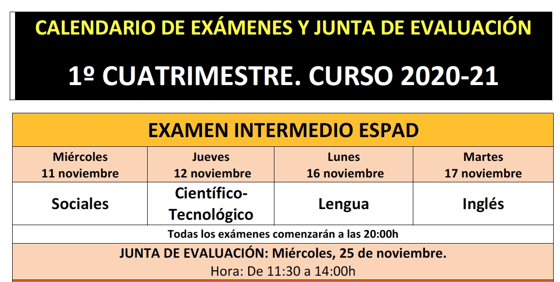 EXAMEN INTERMEDIO: Comienza el 11 de noviembre