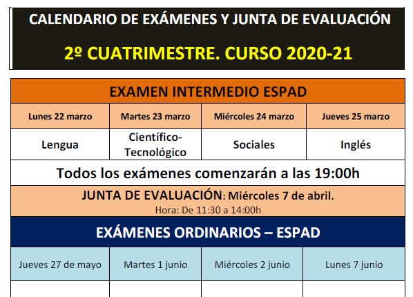 Calendario de Exámenes del 2º Cuatrimestre - ESPAD ALMANSA. CURSO 2020/21