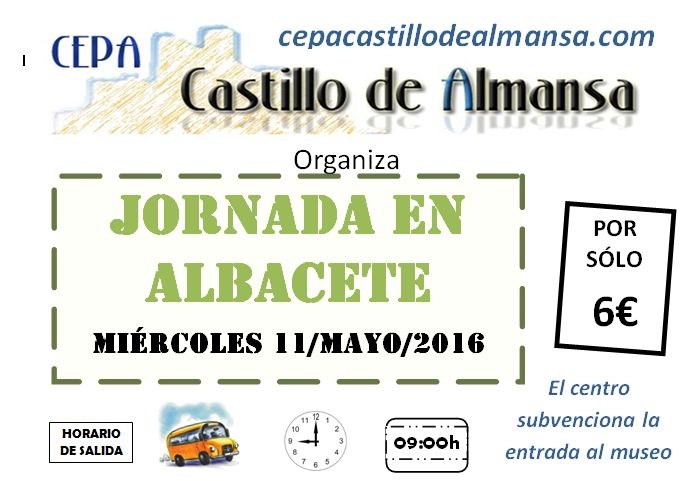 VIAJE ORGANIZADO POR EL CEPA CASTILLO DE ALMANSA para visitar junto a sus alumnos el Museo Arqueológico y el Jardín Botánico de Albacete, un perfecto día para estar en convivencia alumnos y profesores.