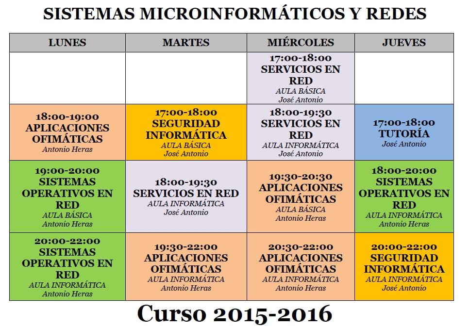 HORARIO CICLO FORMATIVO DE GRADO MEDIO "SISTEMAS MICROINFORMÁTICOS Y REDES"