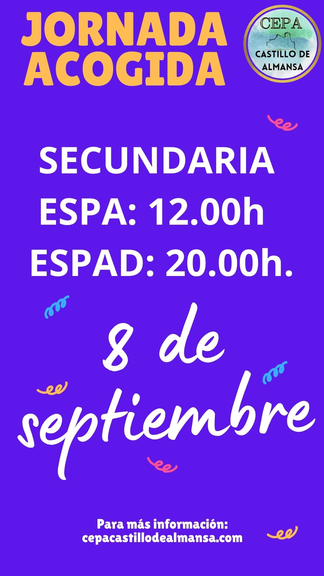 INICIO DE CLASES EN EDUCACIÓN SECUNDARIA: JORNADA DE ACOGIDA. LUNES 8 DE SEPTIEMBRE