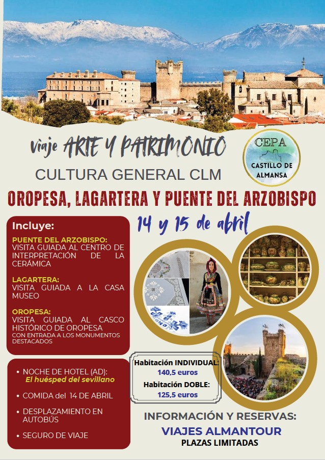 VIAJE CULTURAL: Abierto plazo para reservar viaje a OROPESA, LAGARTERA y PUENTE DEL ARZOBISPO (14 y 15 abril)