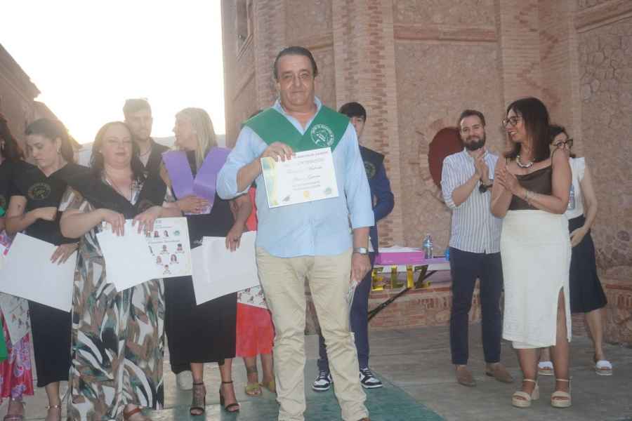 Espectacular Acto de Graduación en el AEPA DE CAUDETE, un escenario diferente al del resto de cursos, con el marco incomparable de la plaza de toros y en el exterior. Este año el alumnado se ha implicado completamente, sorprendiendo al profesorado que no sabía el espectáculo que estaba preparado, orquestado por la alumna Leonor que preparó una actuación inolvidable al estilo de Lina Morgan pudimos disfrutar de una noche inolvidable llena de humor y momentos muy emotivos. El alumnado fue pasando por el escenario con una gran satisfacción por la gesta conseguida, solo ellos saben el esfuerzo que les ha costado.