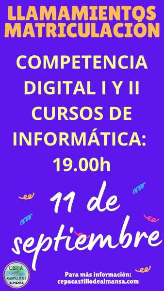 Durante este curso vamos a realizar llamamientos para matricular al alumnado de las enseñanzas NO FORMALES en ALMANSA para las siguientes enseñanzas: