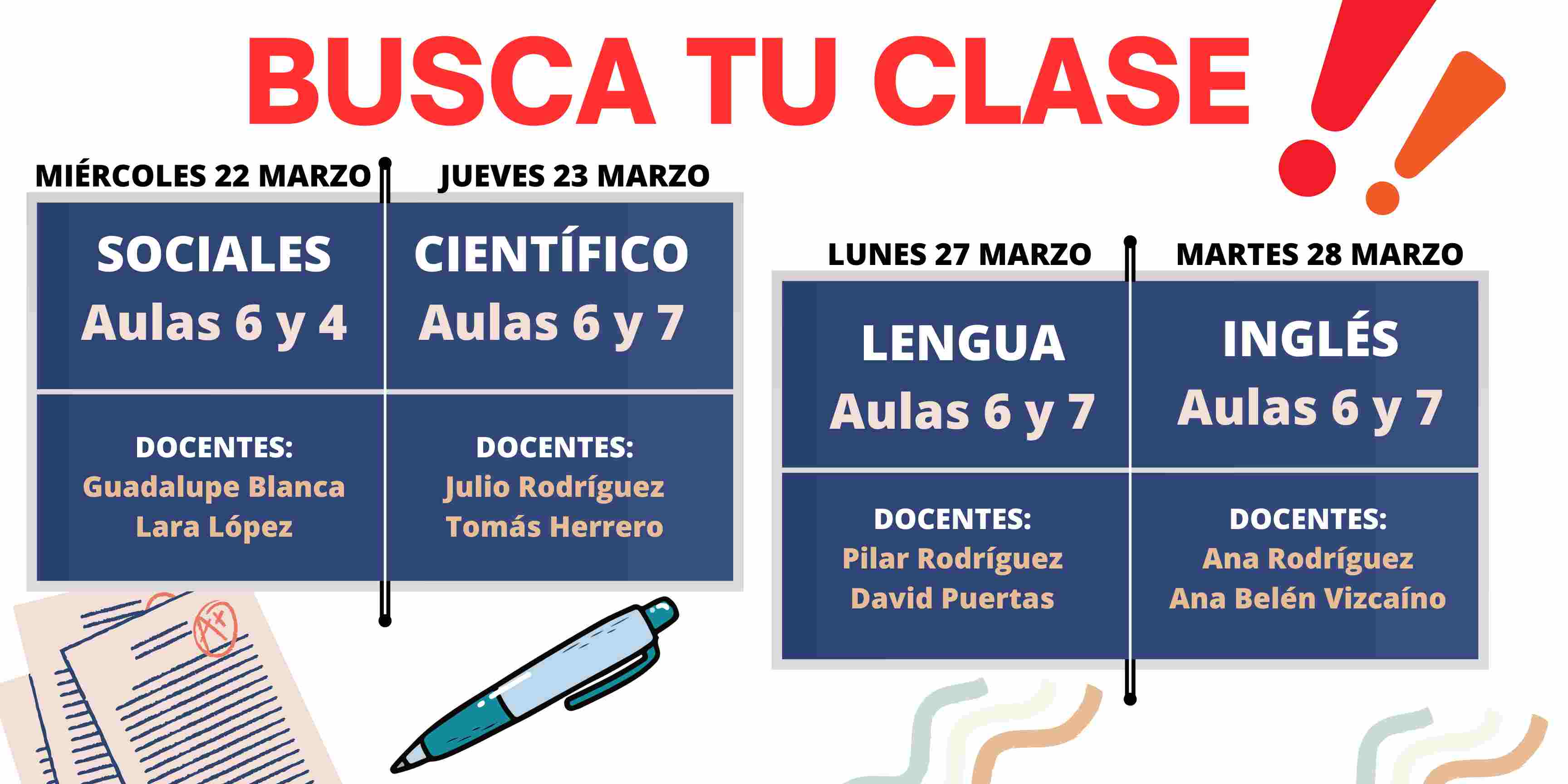 Esta semana comienzan los exámenes de ESPAD. Te dejamos información con los días, aulas y docentes encargados de las pruebas.