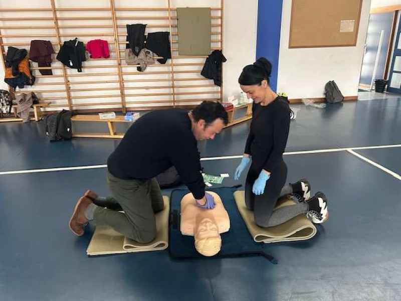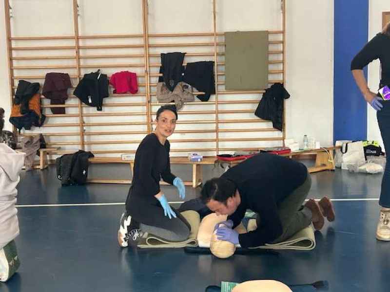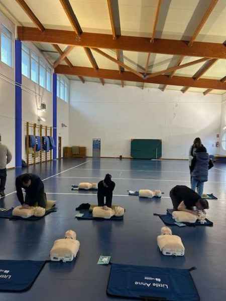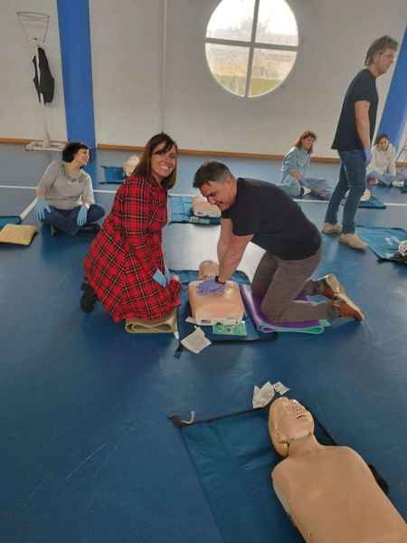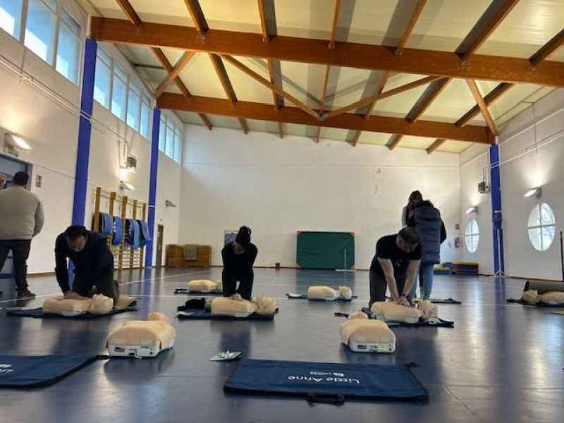 Durante la sesión, de cuatro horas de duración, hemos practicado las maniobras de RCP con muñecos, realizando masajes cardíacos e insuflaciones. Además, hemos aprendido a utilizar correctamente el desfibrilador, asegurándonos de estar preparados para actuar en una situación de emergencia.