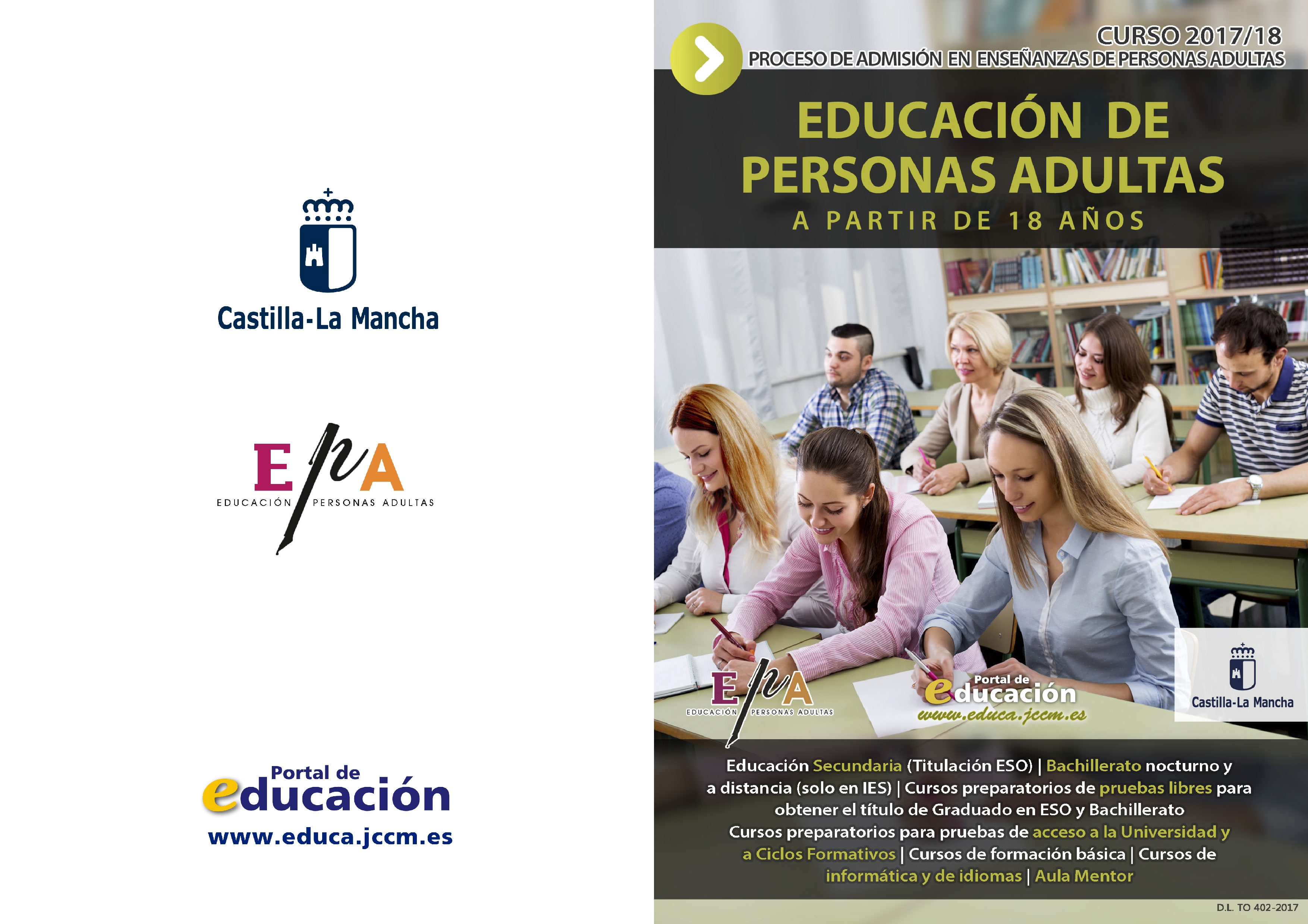 El plazo ordinario de presentación de solicitudes para la admisión a la Educación Secundaria para personas adultas (E.S.P.A.) correspondiente al segundo cuatrimestre del curso 2017-18 se inicia el día 1 de diciembre y finaliza el día 19 de diciembre de 2017.