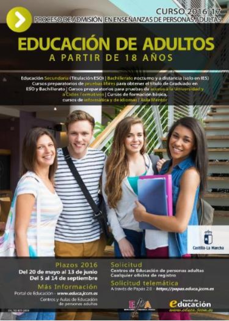 Los días 6 y 7 de febrero se abre el PLAZO EXTRAORDINARIO DE ADMISIÓN PARA CURSAR LA EDUCACIÓN SECUNDARIA PARA PERSONAS ADULTAS.