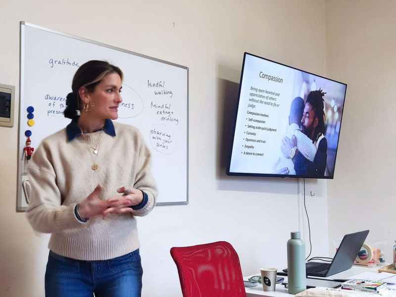 Empezamos el día haciendo una práctica de mindfulness para, a continuación, iniciar una reflexión colectiva acerca de cómo podemos ser conscientes de nuestras actitudes, de focalizar nuestra atención en los aspectos importantes, de calmar nuestro estrés, de liberar nuestra mente,… En definitiva, de vivir el momento presente. Trabajamos la autocompasión y la compasión hacia los demás, así como la confianza como un valor a fortalecer.