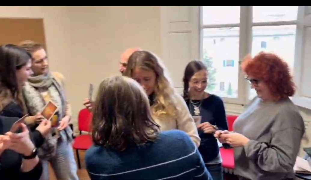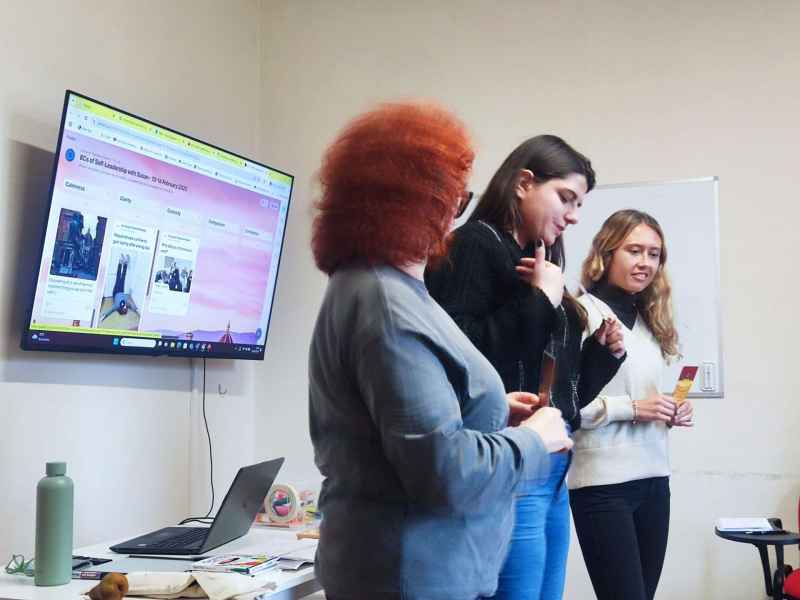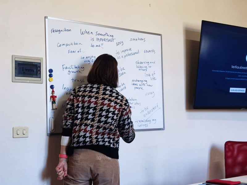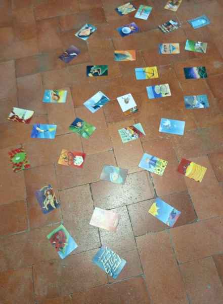 La profesora, Susan, repasa lo que significan y lo que integran cada una de las ocho competencias que trabajamos en este curso (curiosidad, coraje, creatividad, calma, claridad, compasión, confianza y conexión) y realizamos una dinámica con las cartas DIXIT, ya que son un poderoso medio de comunicación que conecta con el inconsciente de los participantes.