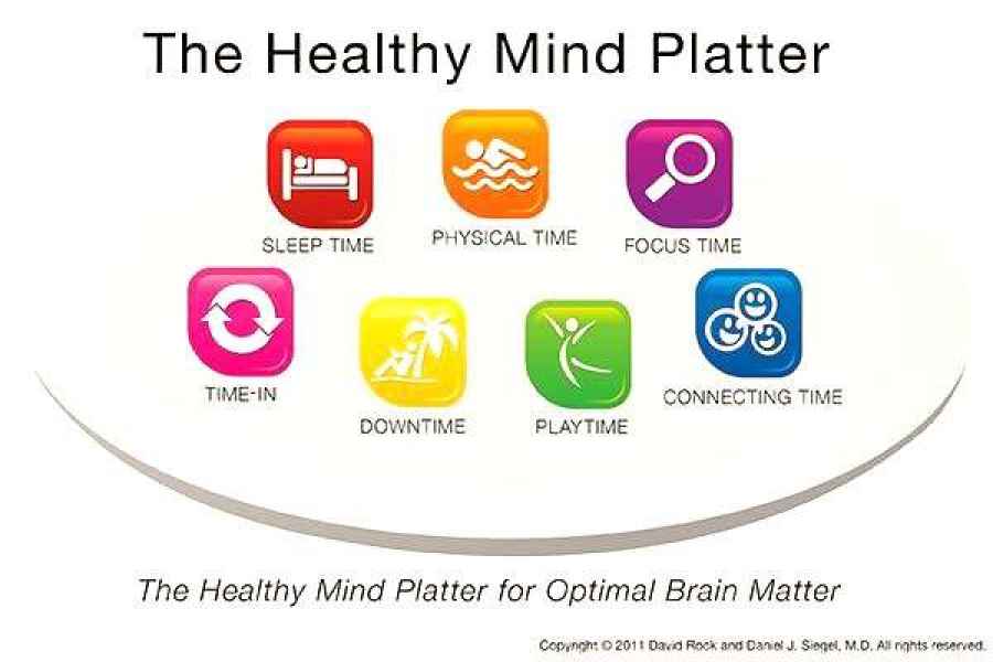 Tras ello, hicimos una actividad muy interesante acerca de los estudios de Dan Seigel que giran entorno al porcentaje de tiempo que dedicamos a una serie de actividades semanales que llenan nuestra vida (Healthy Mind Platter). Se trata de crear un equilibrio entre distintos aspectos profesionales y personales básicos como el tiempo de dormir, de trabajo, de descanso, de deporte,…