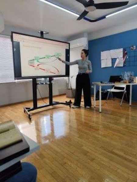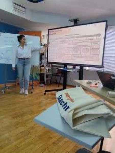 Nos recibió la profesora, Leila Zangar, formadora de EUROPASS TEACHER ACADEMY en Atenas, originaria de Tunez pero formada en París con Máster en Tecnologías de la Información - 2010 - Telecom Paris Tech - París; Directora de Proyectos de TI para proyectos complejos y multiculturales de 2010 a 2023 - París; experta en Liderazgo, comunicación, habilidades de Team Building y profesora en Europass desde 2024.