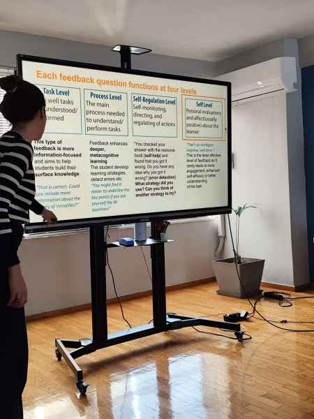 Finalmente se presentó los tipos de feedback y su poder para el aprendizaje, así como practicar el feedback en la clase, explicándole al alumnado la información específica, sobre el proceso de aprendizaje que están teniendo, asegurándose siempre que han interpretado correctamente el mensaje que le da el profesor/a.