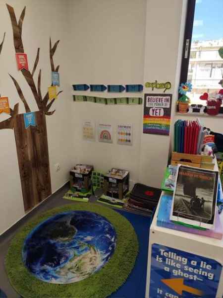Pero la mañana no acaba aquí, sino que nos desplazamos para ver un centro educativo griego, concretamente el centro Verita Internacional School, donde por cierto nuestra profesora Leila llevaba a sus hijos. Comenzamos con una recepción por parte de la Jefa de Estudios, donde nos explicó la forma de trabajar en el centro donde se le da importancia al bilingüismo, así como el trabajo por proyectos.