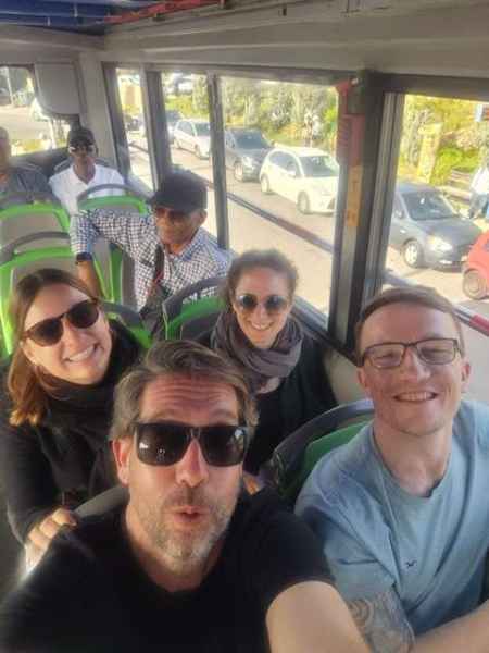Para finalizar este intenso y emocionante día, algunos compañeros/as, aprovechamos la última actividad cultural que consistía, en la utilización del bus turístico para poder recorrer y visitar distintos lugares de la hermosa costa Ateniense, que afortunadamente estábamos gozando de un magnífico día de sol y de su riquísima gastronomía.