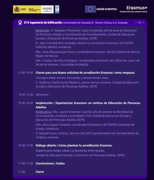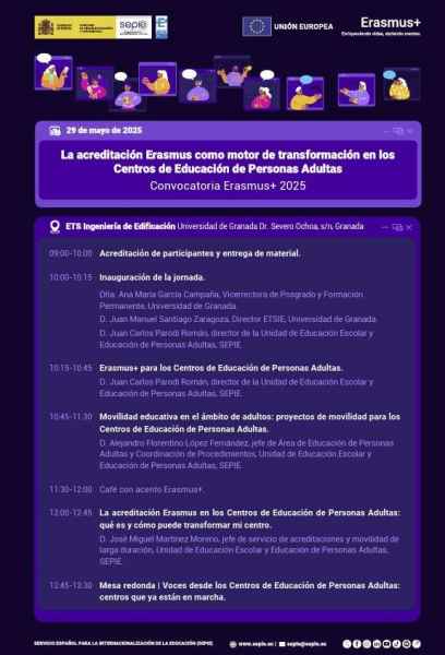 "La acreditación Erasmus como motor de transformación en los Centros de Educación de Personas Adultas. Convocatoria Erasmus+ 2025", organizada por el SEPIE en colaboración con la Universidad de Granada, que se celebró el día 29 de mayo de 2025 en Granada.