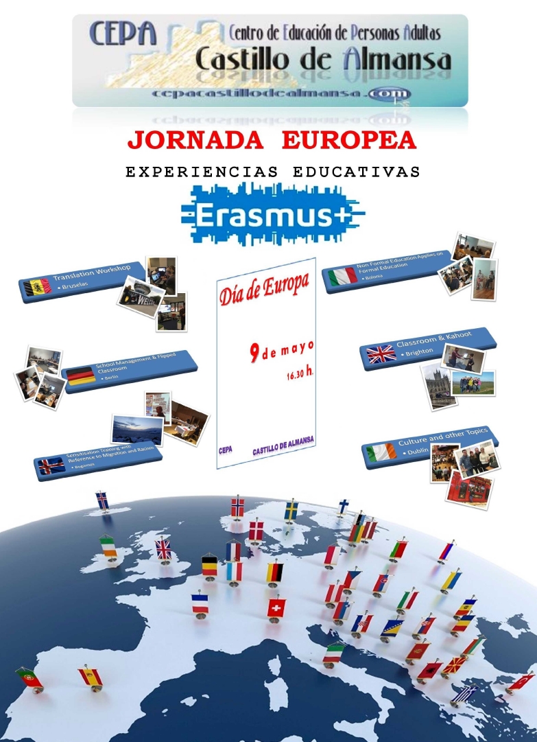 El CEPA CASTILLO DE ALMANSA celebrará el próximo miércoles, 9 de mayo de 2018, una Jornada Europea en la que se relatarán las experiencias educativas vividas en las movilidades europeas que el profesorado del CEPA ha participado dentro del proyecto ERASMUS+.