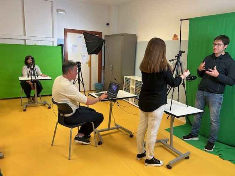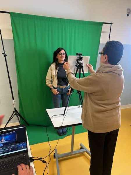 Desde el primer momento, el grupo se puso manos a la obra organizándose de forma autónoma, investigaron, debatieron, tomaron decisiones en común y repartieron tareas. El ambiente era de colaboración, aprendizaje activo y curiosidad. Ver cómo el fondo croma transformaba sus grabaciones en pequeñas piezas audiovisuales con escenarios sorprendentes, desde paisajes naturales hasta ciudades futuristas, despertó sonrisas, asombro y mucha ilusión.