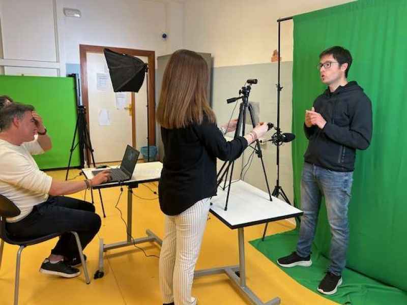 La propuesta era clara y desafiante: preparar una intervención de 30 segundos sobre un tema elegido por cada alumno, buscar un vídeo que funcionara como fondo visual (gracias a la técnica de croma) y grabarlo todo utilizando dos cámaras y dos micrófonos para asegurar una buena calidad técnica. La herramienta elegida para esta grabación fue OBS Studio, un programa profesional de código abierto que permitió gestionar múltiples fuentes de audio y vídeo con gran eficacia.