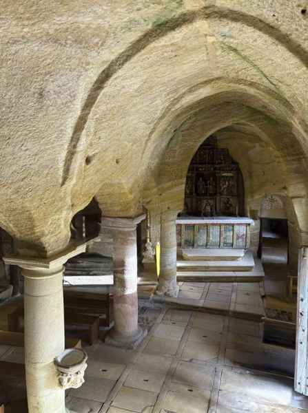 Por la tarde visitamos Olleros de Pisuerga, un lugar que parece sacado de una leyenda. Celeste López nos presentó la Iglesia de los Santos Justo y Pastor, excavada en la roca y de estilo mozárabe. Dos naves, dos ábsides y una sensación indescriptible de paz y admiración ante el ingenio humano.