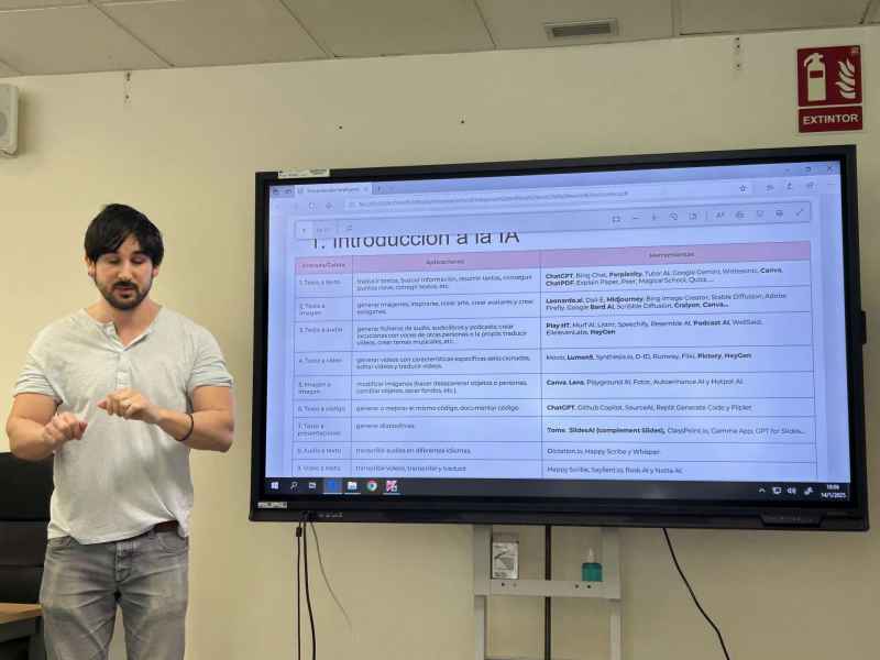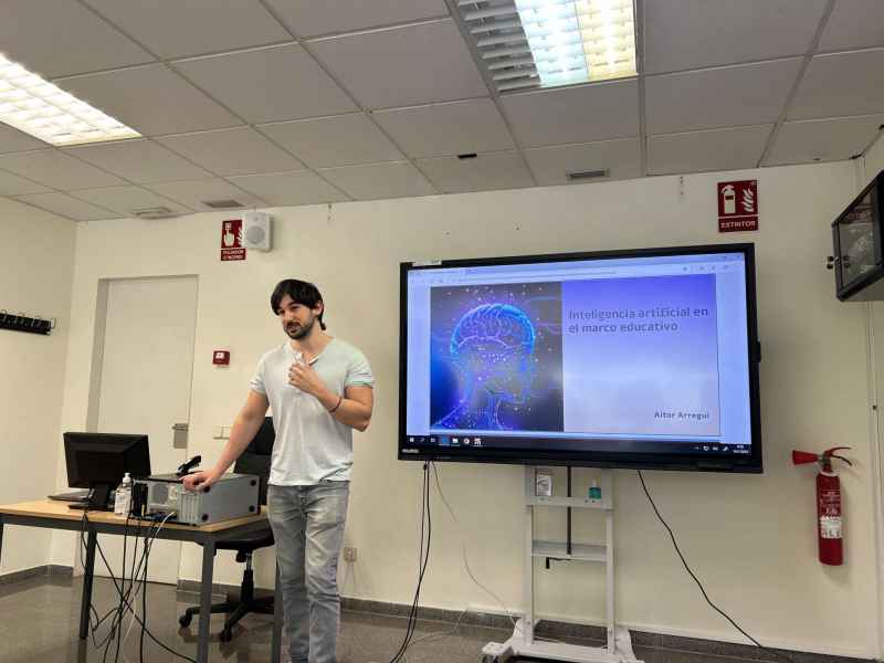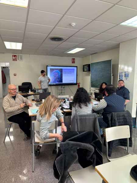 Empezamos la jornada a las 9:30h con un taller sobre la importancia de la Inteligencia Artificial en la Educación impartida por Aitor, profesor de sociales del CFA SANT BOI. Vimos distintas herramientas de IA entre las que destacamos ChatGPT, CANVA, leonardo.ia y perplexity. Realizamos una práctica de generación de imágenes a través de texto con leonardo.ia