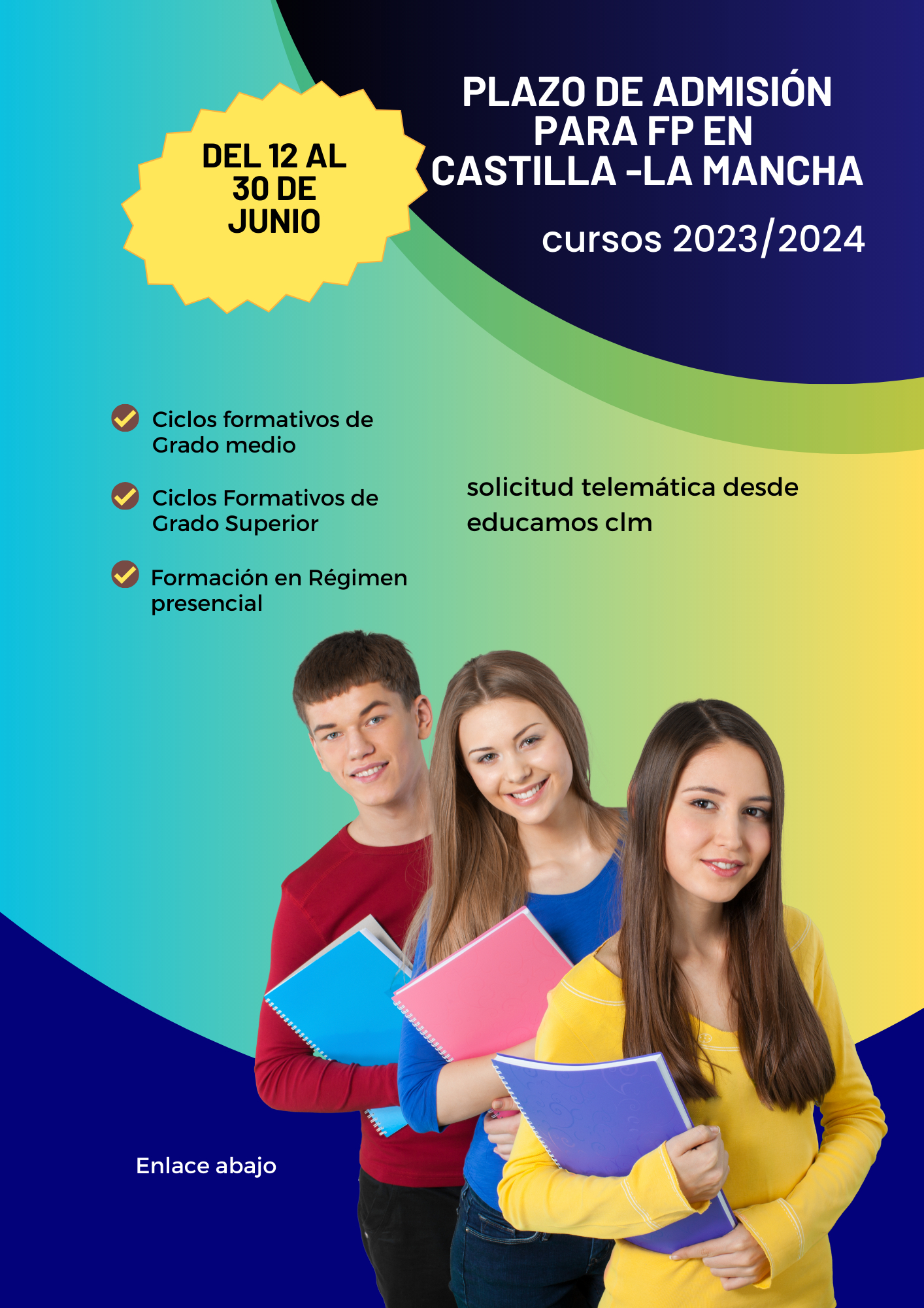 Se abre, por educamos clm, el plazo de admisión para FP a distancia en Castilla-La Mancha del 30 de junio al 14 de julio. Enlace de la jccm: