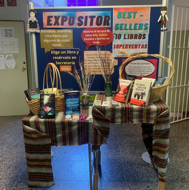 Hemos colocado en el hall del centro un expositor con 10 libros superventas de este año 2023 y del año 2022. Van a estar expuestos todo el mes de abril para que todo el alumnado pueda manipularlos, visionarlos y se animen a reservarlos para poder leerlos a partir de mayo.