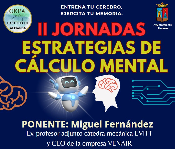 El CEPA Castillo de Almansa informa de que hemos abierto el periodo de inscripción en las II Jornadas gratuita sobre Cálculo Mental impartida por Miguel Fernández, ex-profesor adjunto cátedra mecánica EVITT y CEO de la empresa afincada en Almansa VENAIR.