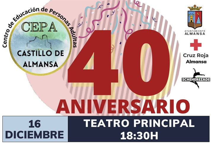 El CEPA Castillo de Almansa cumple 40 años y lo queremos celebrar como se merece, con un evento conmemorativo el viernes 16 de diciembre en el Teatro Principal.