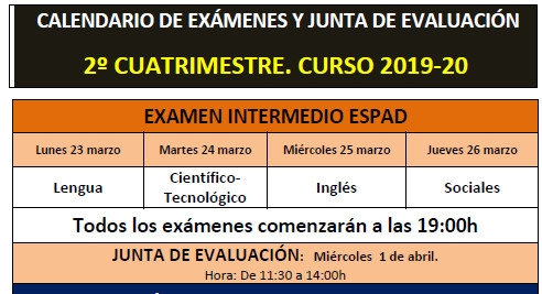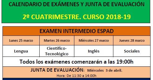 Calendario de Exámenes de ESPAD del 2ª Cuatrimestre - CURSO 2018/19 - ALMANSA