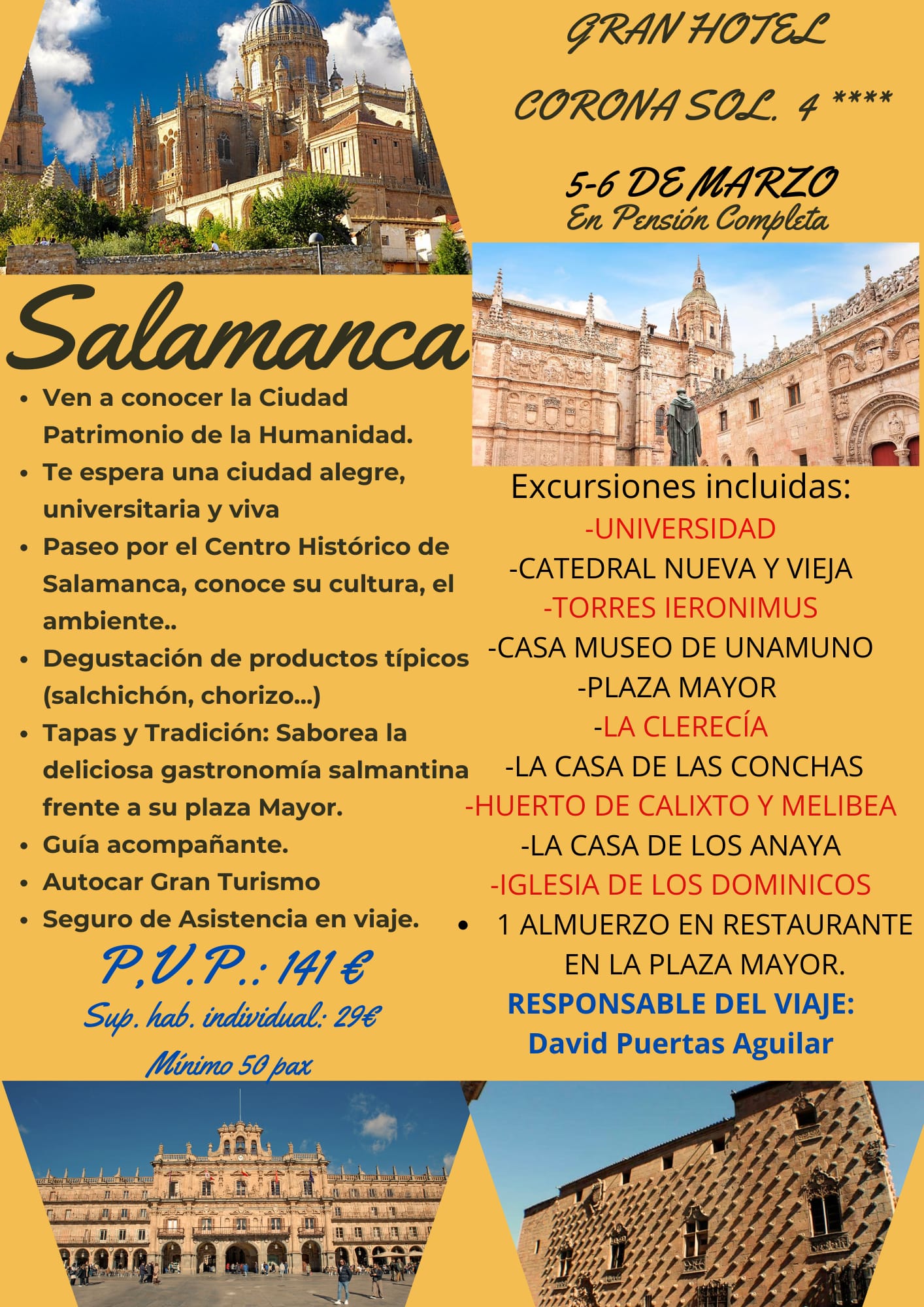 VIAJE CULTURAL A LA MÁGICA CIUDAD DE SALAMANCA, ORGANIZADO POR EL DEPARTAMENTO DE COMUNICACIÓN. 5 y 6 de marzo.