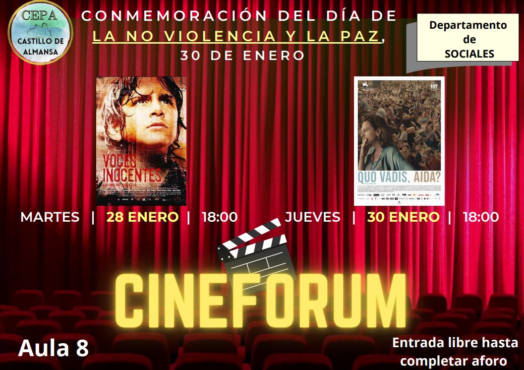 CINEFORUM: Conmemoración del día de la NO violencia y la paz, 30 de enero. Dos películas emitidas.